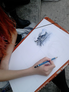 Al carrer i fent servir aspectes d’apunts al natural i acolorit ràpid amb aquarel·les, els alumnes, van improvisar un argument per a una plana de còmic amb molt poc temps de reacció.